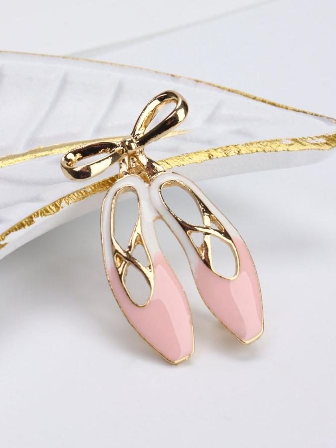 Женская брошка бижутерия "Пуанты" розовая в золотистом цвете