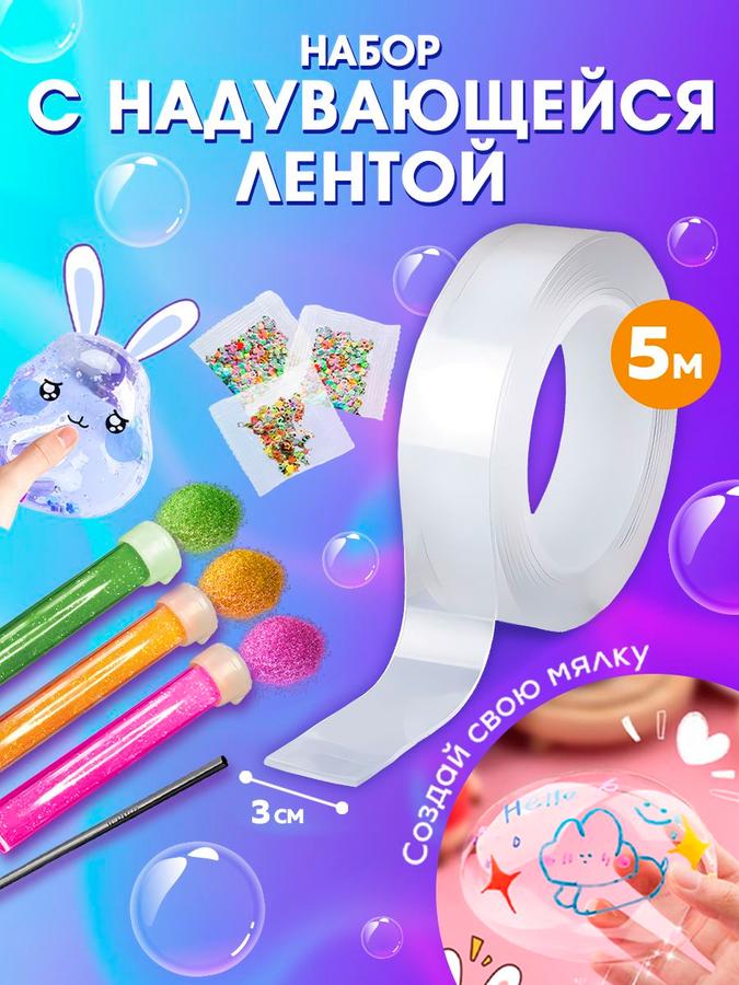 Нано скотч для творчества 5 м с аксессуарами прозрачная клейкая лента
